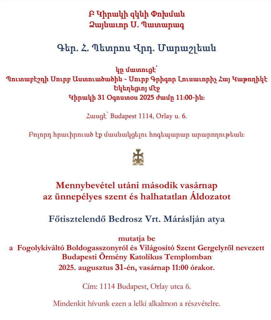 „Valahogy így is lehetne. A Facebook magyar nyelvű a mise örmény és magyar énekekkel felváltva. Ezt könnyebben elfogadnák a magyar-örmények Gyergyószentmiklósról!”