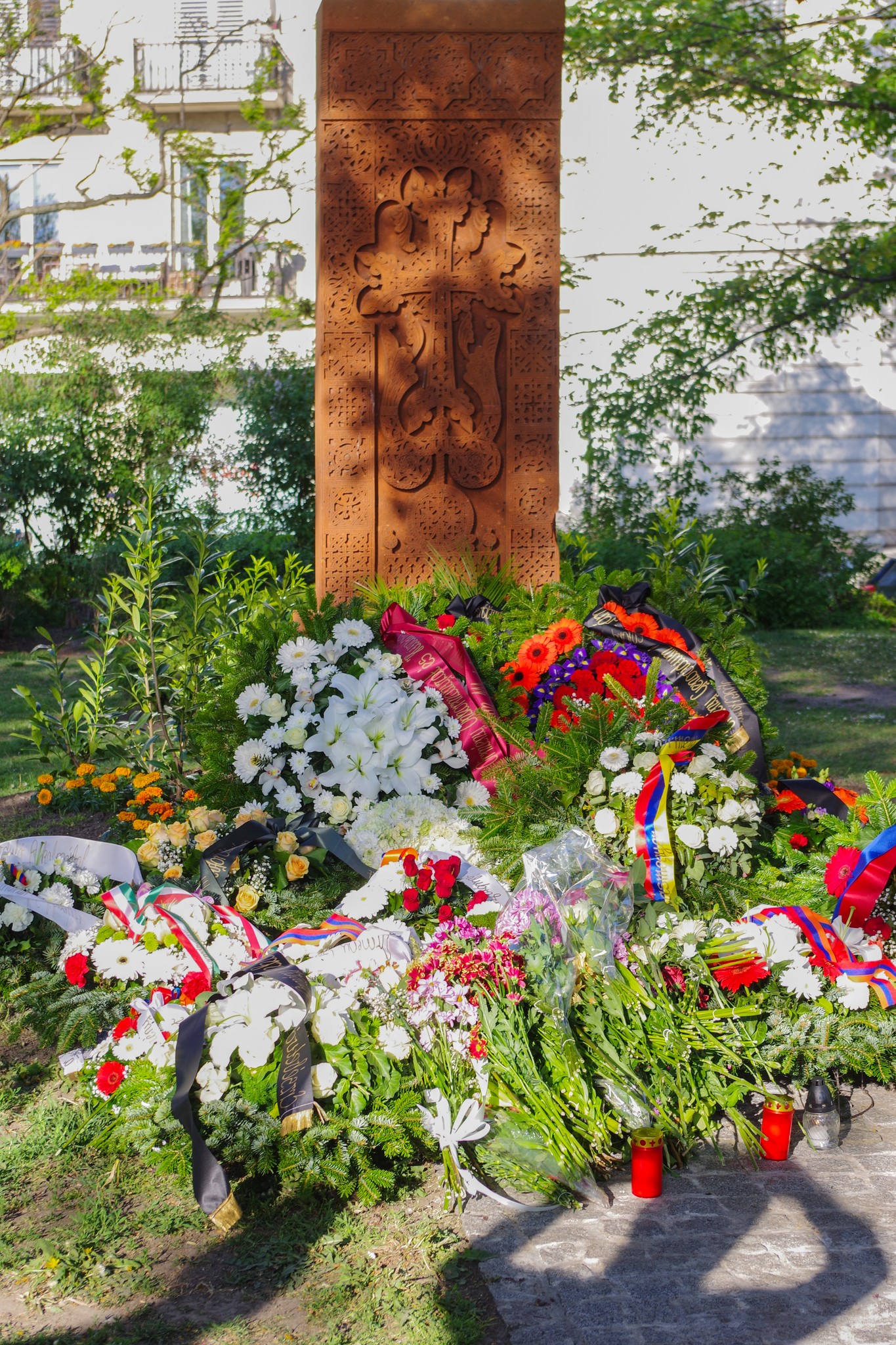 Armenian Khatchkar, memorial for the Martyrs of the Armenian Genocide 1915, in the Március 15 tér in Budapest.